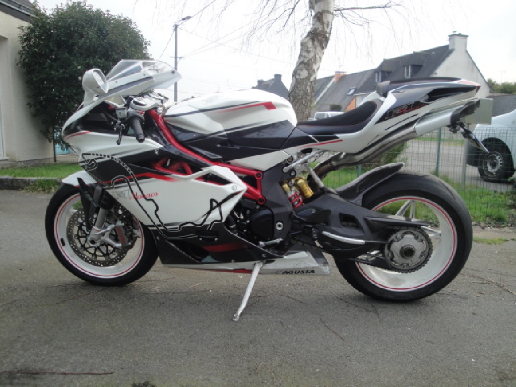 DESCRIPTION ET INFORMATIONS COMPLÉMENTAIRESVends très belle MV Agusta F4R Monaco (modèle unique) année 2011, première main, très peu kms, nombreux accessoires carbone et pièces MV Corse, sellerie alcantara, ligne d'échappement RG4, grand soin apporté à la moto, dors dans garage sous bâche, entretien concession agréée MV Agusta, vendu avec pièces d'origine