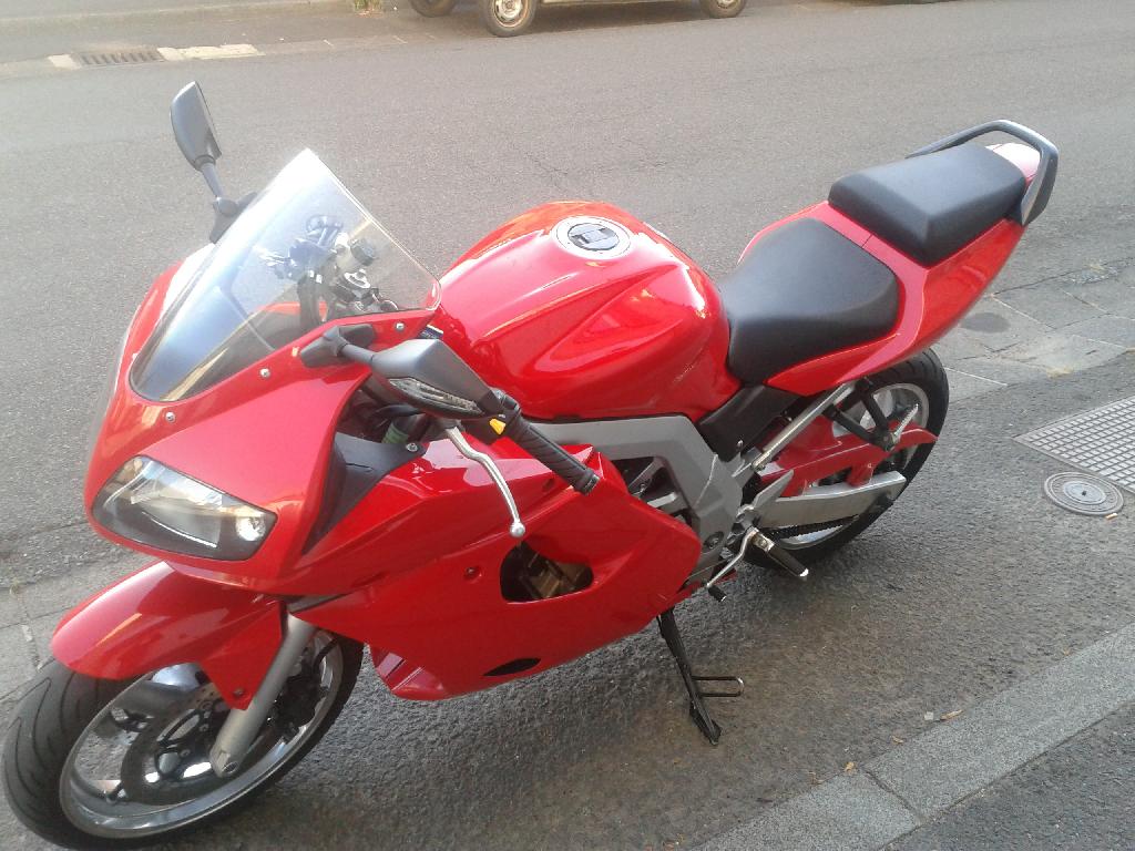 DESCRIPTION ET INFORMATIONS COMPLÉMENTAIRESkit chaîne fait il y a 2000 km, temps de chauffe toujours respecté, dort en garage. Rétroviseur avec clignotant intégré, compteur digitale. Possibilité d'avoir une sacoche de réservoir et un équipement féminin.