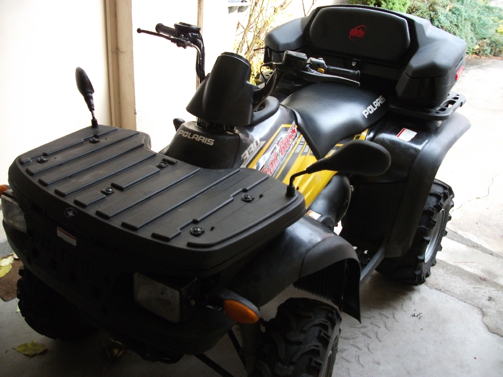 quad polaris trail boss 330 année 2007,quad acheter chez polaris revision faite chez polaris ainsi que changement du kit chaine et roulement arrière et batterie.quad tres fiable et passe partout,vendu avec le coffre arriére,consomme tres peu.prix a d'ébattre.merci